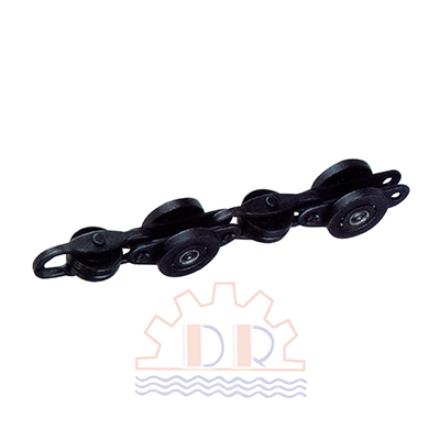 此類鏈條系專門為生產(chǎn)輕小零件的設(shè)計廠商制造的特殊鏈條,結(jié)構(gòu)特點(diǎn)是在原標(biāo)準(zhǔn)鏈條基礎(chǔ)上,裝于固定16mm導(dǎo)柱,再配以與產(chǎn)品相適應(yīng)的小臺車即可完成所需的各項工作,導(dǎo)柱間距有450mm、600mm等不同規(guī)格。
